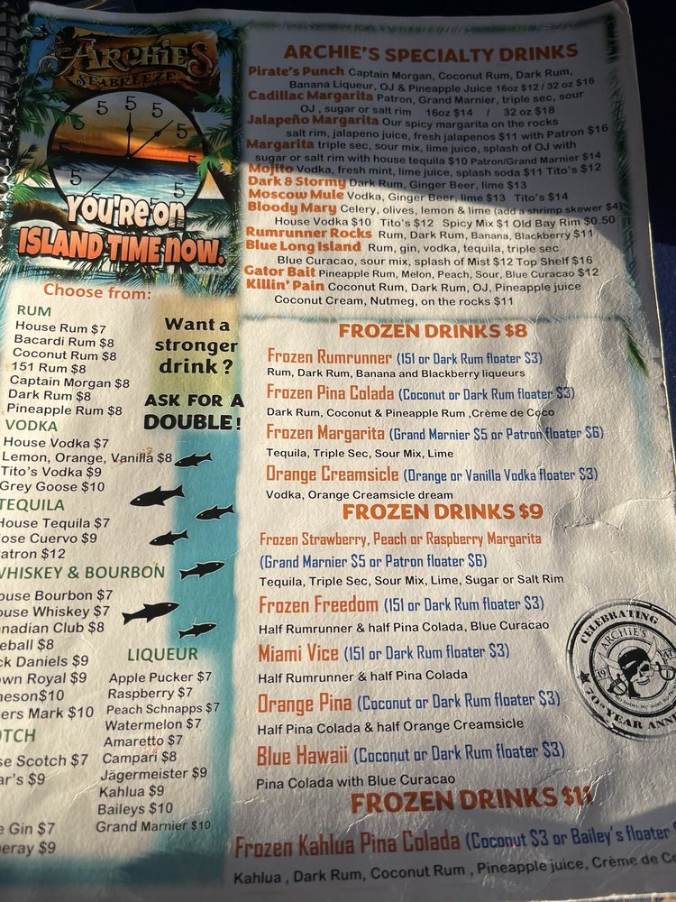 Archie's Seabreeze is a hidden gem located at 401 S Ocean Dr Fort Pierce, FL. With a kitschy Key West vibe, this divey yet casual spot offers a unique dining experience. Known for their fresh and delicious seafood dishes, customers rave about the blackened mahi bowl, conch fritters, coconut shrimp, and grouper with coconut rice. The outdoor dining area, complete with live music and activities, adds to the laid-back atmosphere. The friendly and prompt service, especially Chris' renowned margaritas, enhances the dining experience. Archie's Seabreeze is pet-friendly, making it a perfect spot for a fun and delicious meal. Be sure to try their fried pickles, shrimp, mussels, and mahi sandwich for a truly memorable dining experience by the beach.